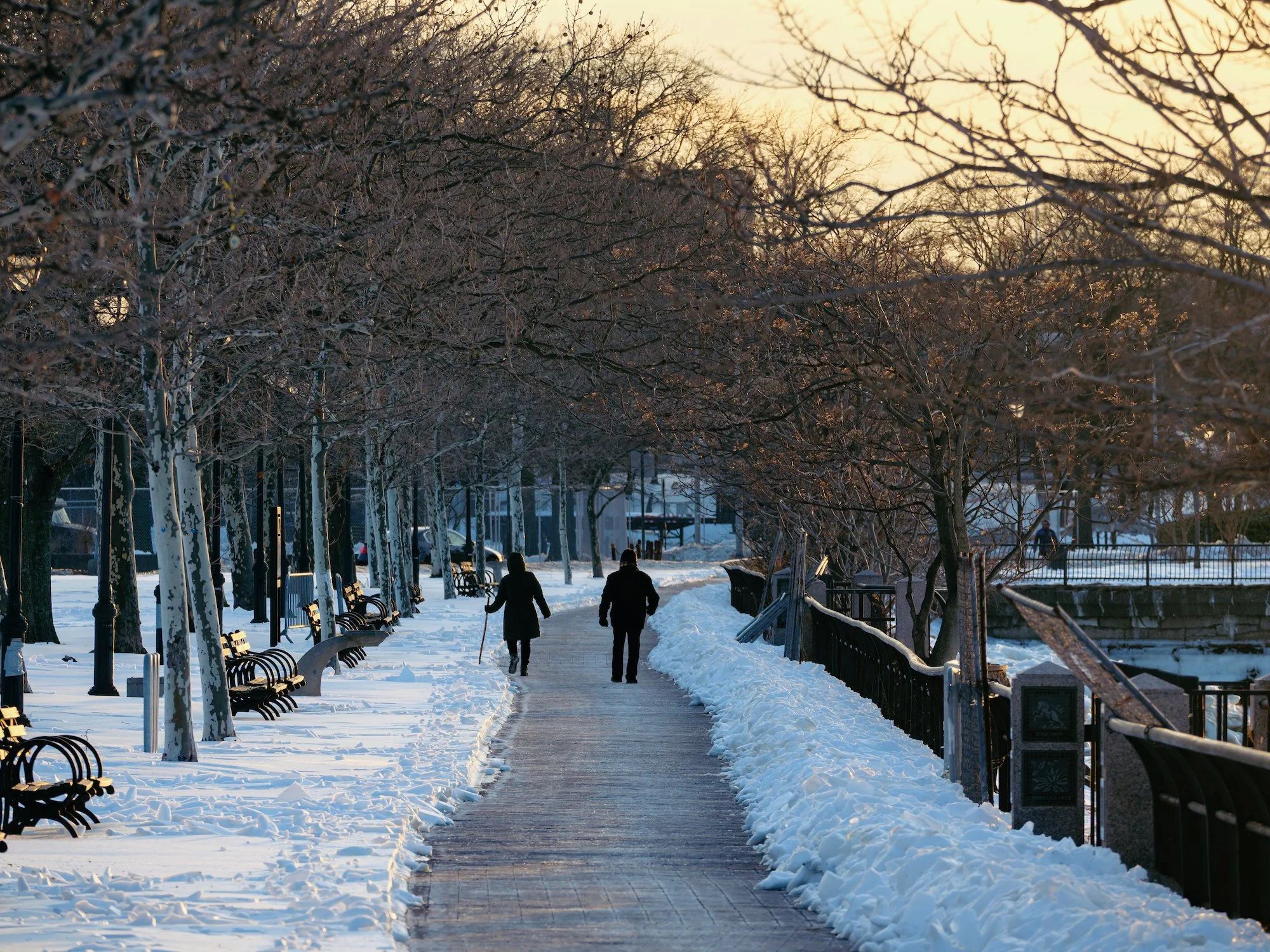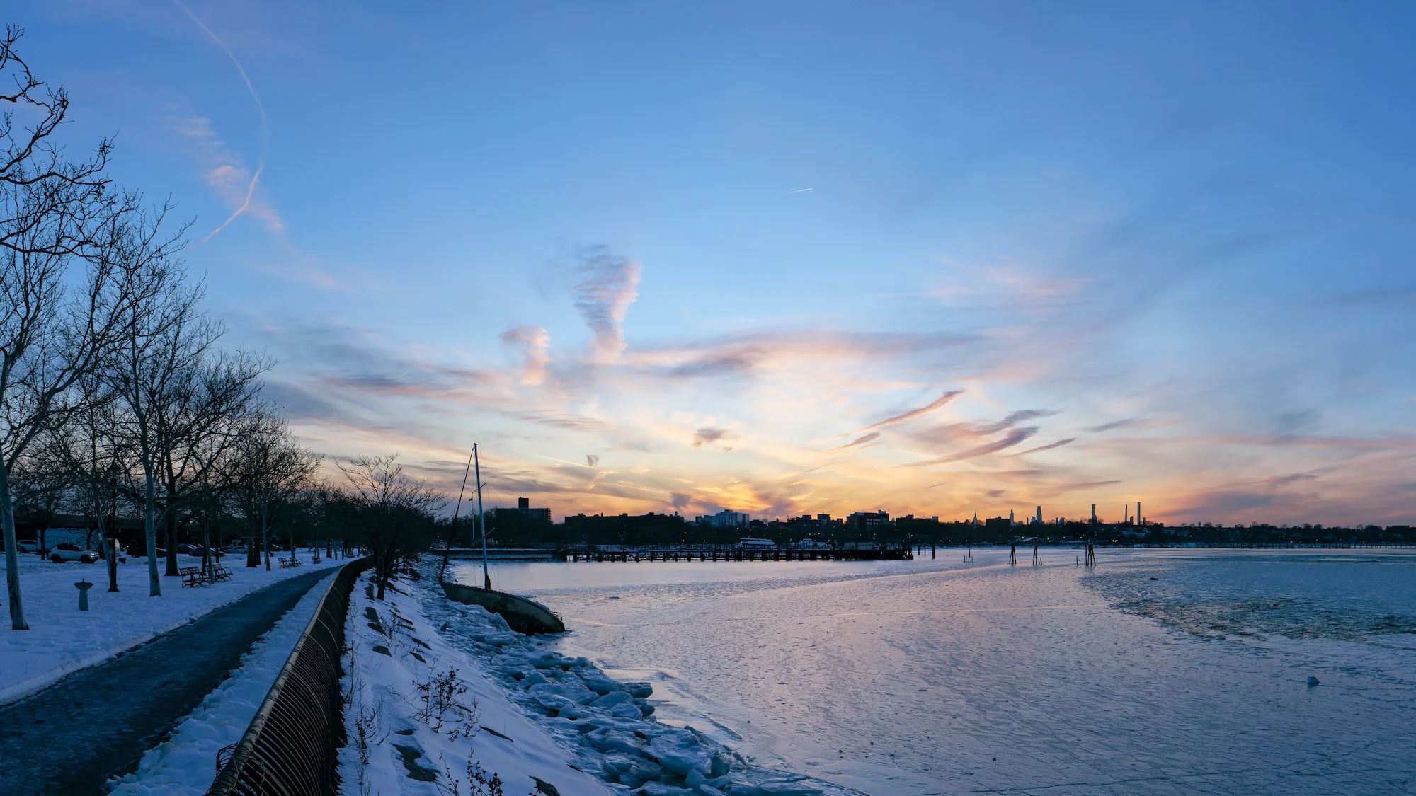 February 4th, 2026 - A couple walks along frozen Flushing Bay.